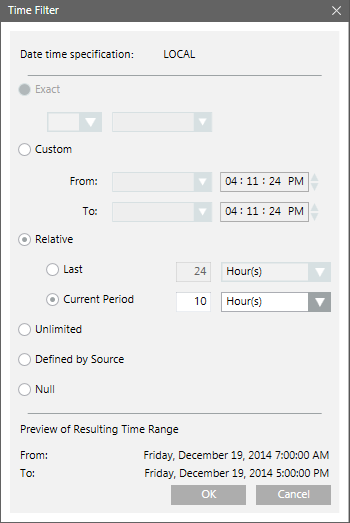 b. In the Time Filter dialog box, select the Relative option.