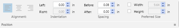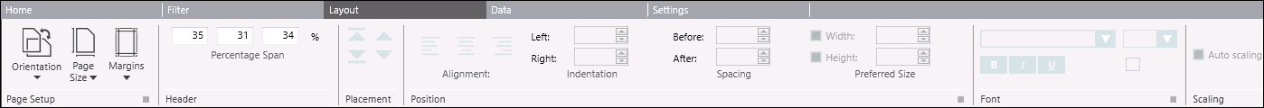 The Position group box allows you to adjust the position of the layout elements of a Report Definition.