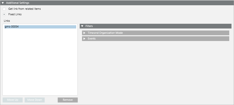 Fixed Links: This option lets you manually link one or more resources that you want to display along with this procedure step during assisted treatment. You can link one or more objects by dragging the corresponding objects from System Browser to the Links area. You can change the order of the links with the Move Up and Move Down buttons or use the Remove button to remove any unwanted links.