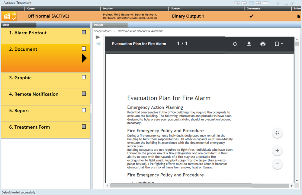 - The Assisted Treatment window opens. It displays the descriptor of the event that you are handling along the top, and below it a sequence of steps you must follow to handle that event. In Event List, the event button for that event is replaced by a blank placeholder to indicate it is under assisted treatment.