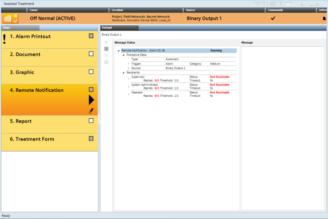 - You are in the Assisted Treatment window and the operating procedure includes a remote notification step that you must execute manually.