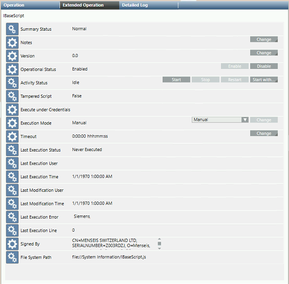 A script can be executed if its Operational Status in the Operation tab is Enabled, and provided it is not already running (Activity Status is Idle).