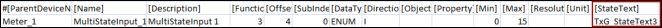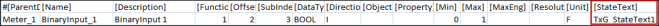 To represent more than two states, you must configure the StateText attribute of a multi state point. In the CSV file example shown below, the text group has three states’ State1, State2, and State3.