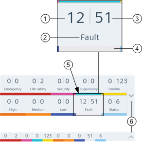1 | Number of unacknowledged events in the category. The lamp blinks if there is at least one unacknowledged event. |