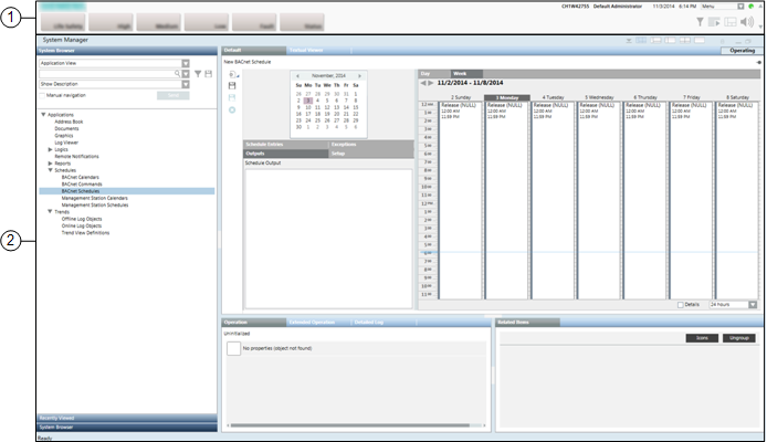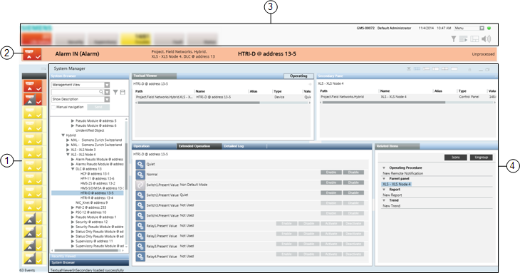This section provides an overview of the main elements of the Desigo CC user interface.