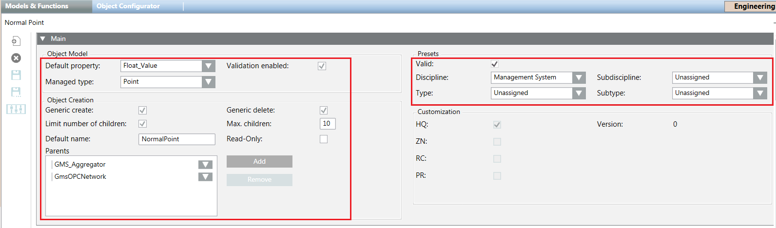 The object model data exported corresponds with the configuration of the higher customization level. This customization level is the one where the object model was originally created and where the object model can be re-imported. For example, if an object model was created at L1-Headquarter and then customized at L4-Project, the object model data exported will be the ones of the L1-Headquarter level.