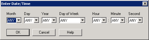 Accept the default setting of ANY, or click the drop-down arrow to select the second. The numbers 0 through 59 represent the number of seconds in a minute. |