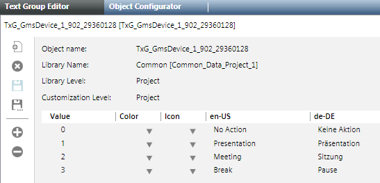 The Text Group is created during engineering data import and saved in the library project folder. Texts are not available on the management platform if you define other scenes; they must be created first.