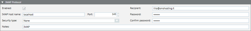 The IMAP Protocol expander lets you configure the settings of the mail server (IMAP) for incoming messages.