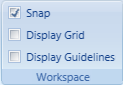 The Workspace group options allow you to hide or display grids and guidelines, as well as attach graphic elements to guidelines.