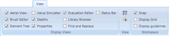 Element Tree | Show or remove the Element Tree view from the workspace. |