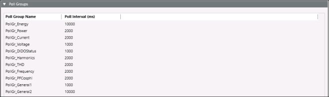 The following pre-defined poll groups are defined with the Modbus TCP Power Devices 2 extension module.