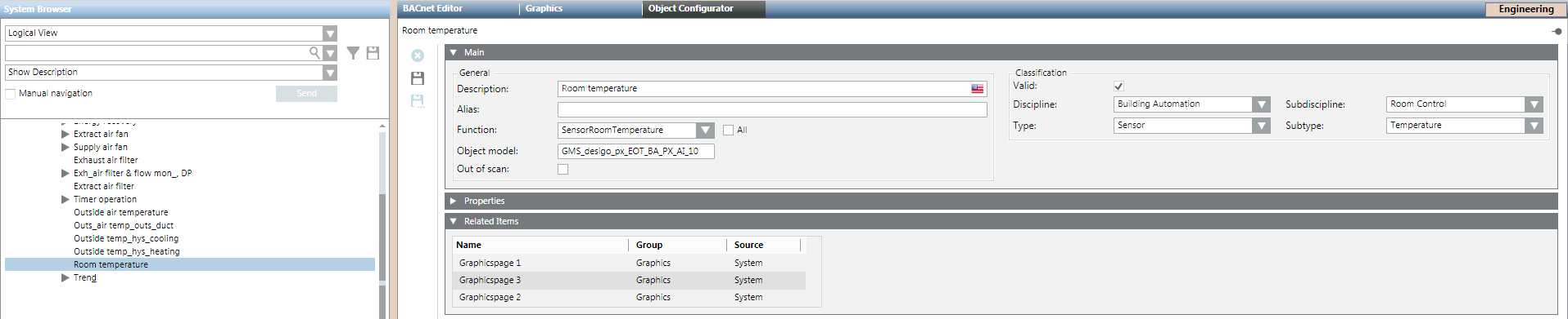 - In System Browser, select the wanted view and then the wanted system object. For example, Project > Field Networks > [network] > Hardware > [device] > [data point].