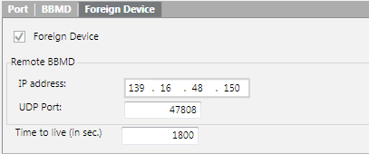 Management platform and Desigo automation stations are available on different IP segments. The management platform is entered as a participant in the FDT (Foreign Device Table) on the automation station using the FD (Foreign Device). Only IP automation stations are integrated on the BACnet network.