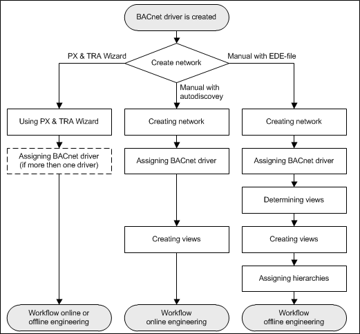 Scenario: You want to configure Desigo CC for connecting to 3rd party BACnet devices. These workflows will guide you through the necessary steps as an online or offline integration.