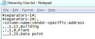 The hierarchy separator defines the location in the text where a new hierarchy level is created (AAA_BBB:CCC'DDD-EEE_FFF+GGG).