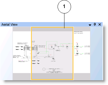 The Aerial view allows you to view the drawing board and the canvas at all times. You can zoom in and out of a specific area and pan around the drawing area with the viewport.