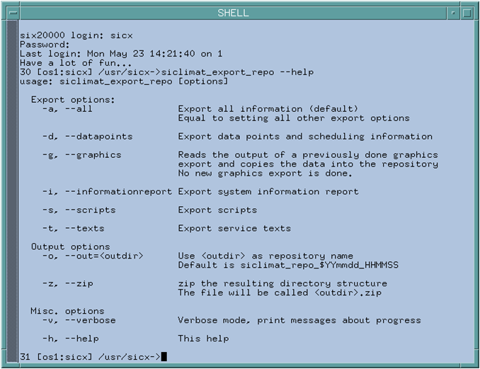 (Optional) Run the siclimat_export_repo script with the --help option, to see all options.
