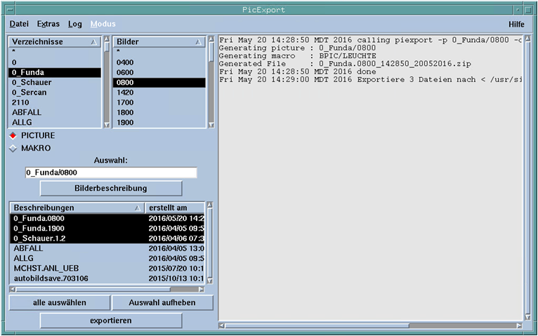 An export repository with all export files (data points, graphics, scripts, service tests, system information report) is created. The directory name has the format sicx_repo_<date>_<time>.