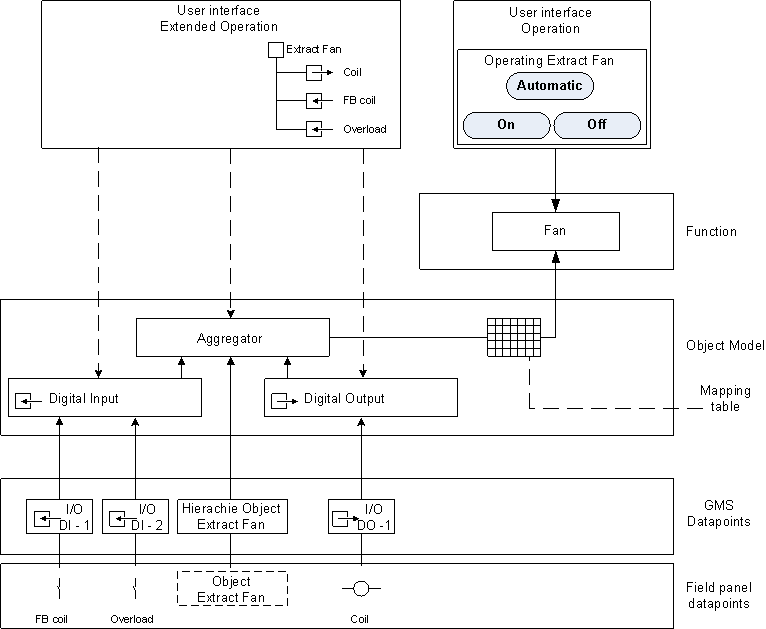 Instantiated objects for individual subsystems are always related to an Object Model and a Function. This concept ensures that the user experiences the same operating and monitoring philosophy for the same or similar Functions.