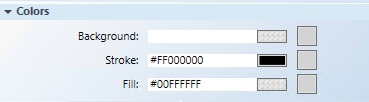 - Select the button (for example, rectangle) element on the canvas, and from the Property View, expand the Colors property group. The button element must have a color associated with the Background or Fill fields, so that it has a selectable area. If you leave both properties blank, the button element cannot be selected. Format the button element using the following properties.