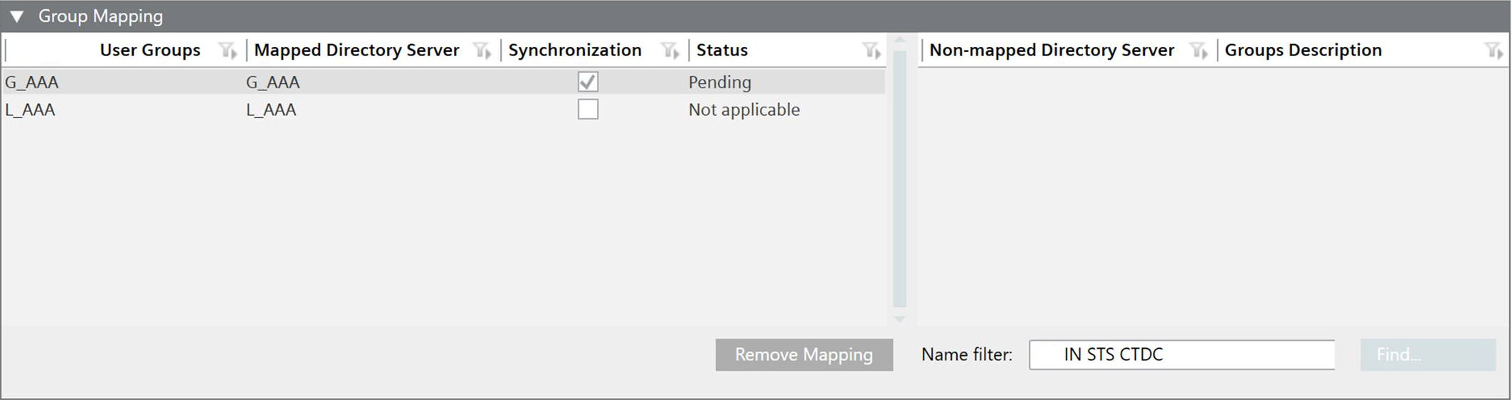 - The groups display in the Non-mapped Directory Server Groups list.
