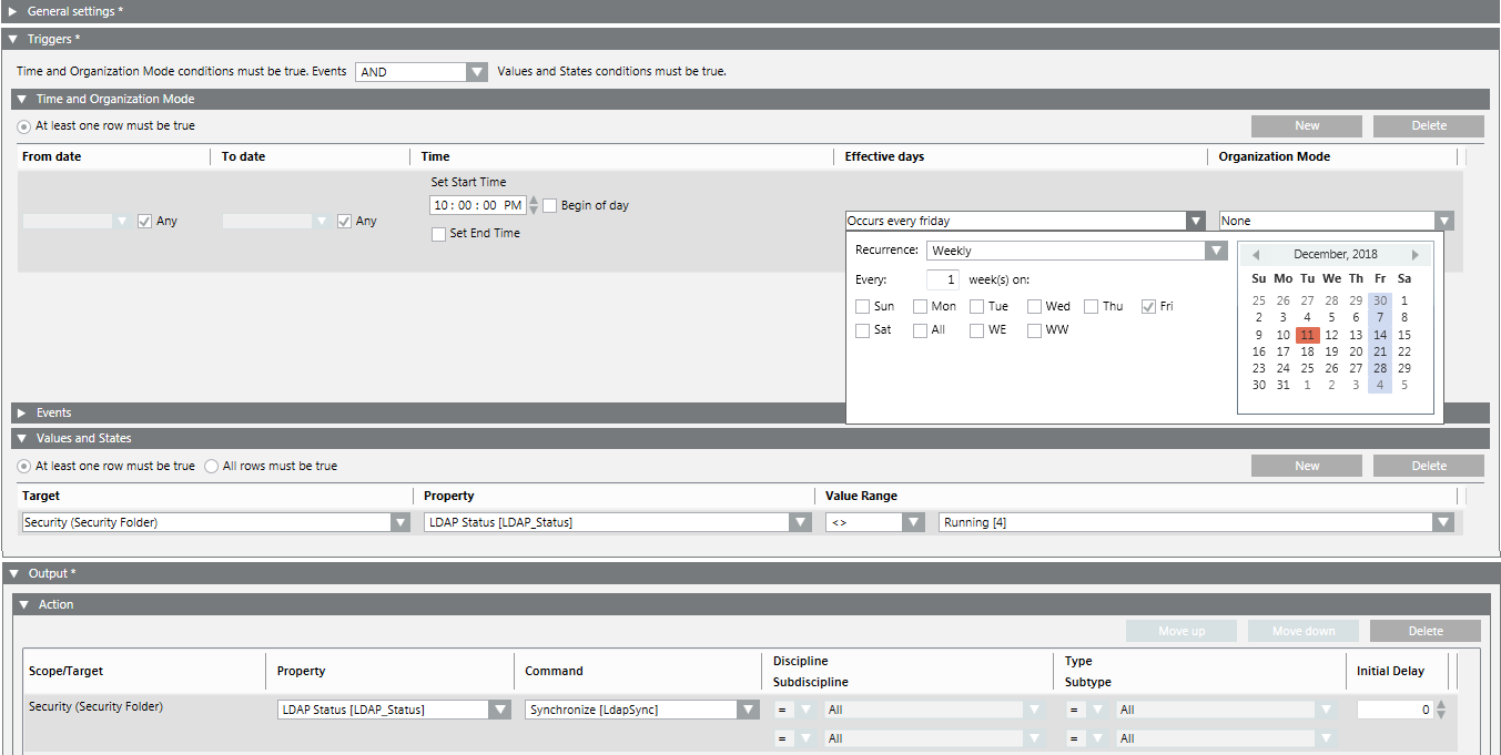- The execution of the LDAP synchronization is logged. In case of a synchronization error, a status alarm is triggered.