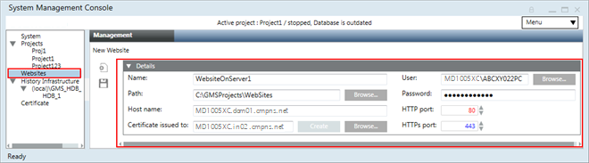 - The websites created outside the SMC are listed under the Websites node in the SMC tree. However, you cannot delete them using the SMC.