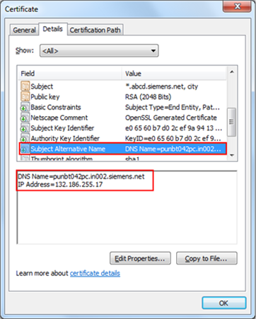 You can create a host certificate having the Subject name field as a unique name (for example, *.in002.company.net) and not necessarily the full computer name. However, the Subject Alternative Name property must contain all the desired host names of the machines by which the machine can be accessed. This property allows you to specify a list of host names to be protected by a single certificate.