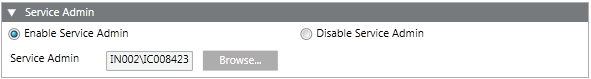 The Service Admin expander has the following two options: