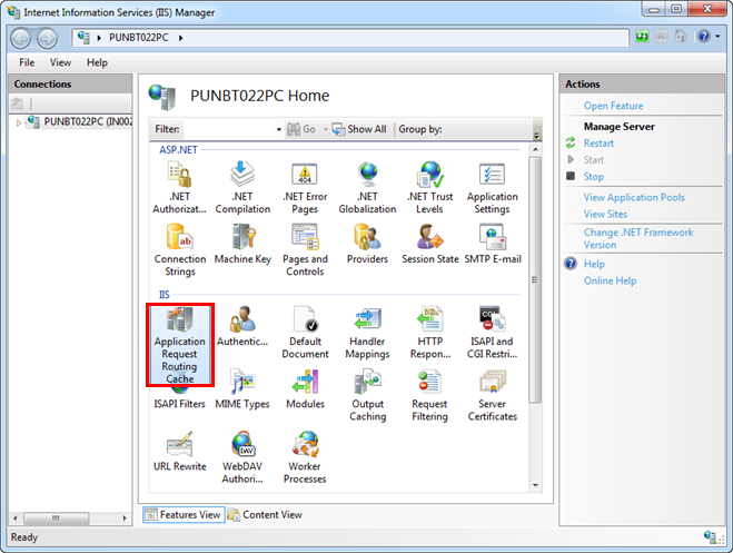 - In the IIS Manager window, double-click Application Request Routing Cache.