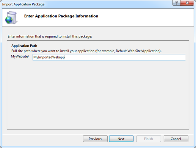 - Select Sites > [website] and click Import Application from the Actions pane.