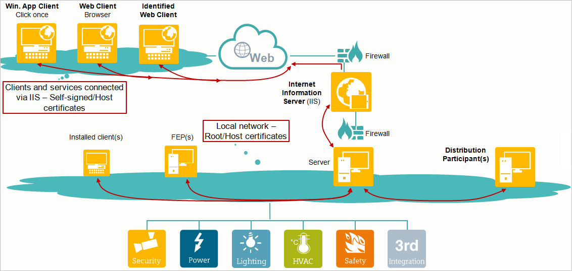 Certificates are used to authenticate entities (person, organization, website or a software application) and establish secure communication between server and clients when deploying Desigo CC system.