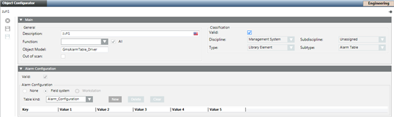 - Select Project > System Settings > Libraries > [L1-Headquarter, L2-Region, L3-Country or L4-Project] > BA > [subsystem type] > [alarm table] > [alarm table Driver].