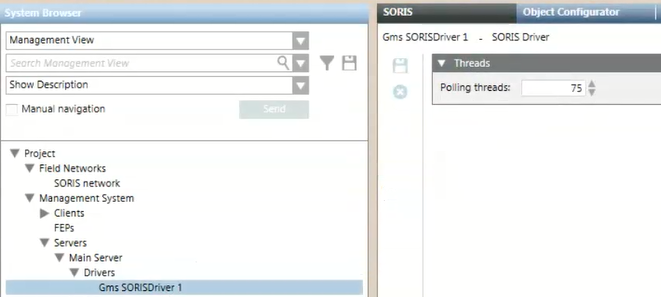 - Select Project >Management System > Servers > Main Server > Drivers > [SORIS driver].