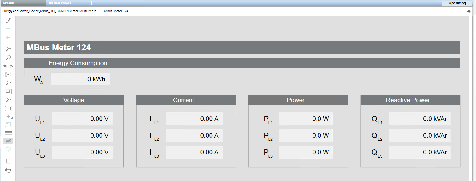 The following graphic template is provided with the installation of the M-Bus extension to graphically represent power meter multi-phase properties.