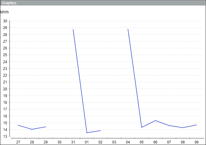 In reports displaying consumption data, any missing data can lead to huge spikes in consumption values in graphs and blank values in tables. This can be avoided by connecting and smoothing the missing values.