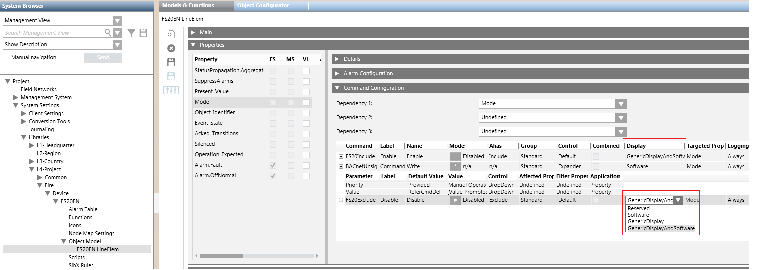 - The customized folder is selected in System Settings > Libraries > L-customization level > Fire > Device > Fire_Device_FS20EN… > ObjectModel