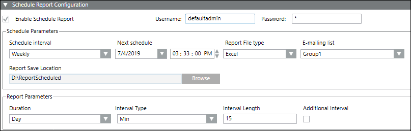- Select the Enable Schedule Report checkbox to activate the report scheduling configurations.