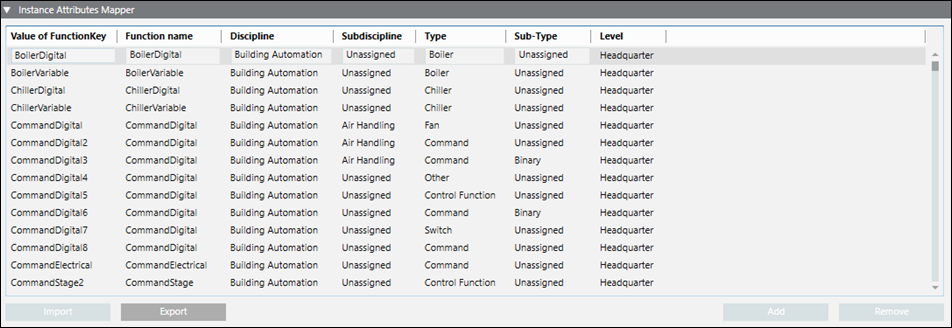 The Instance Attributes Mapper expander allows you to specify the S7 function attribute, and the related instance attributes to which you also assign discipline, subdiscipline, type and subtype.