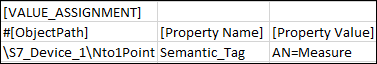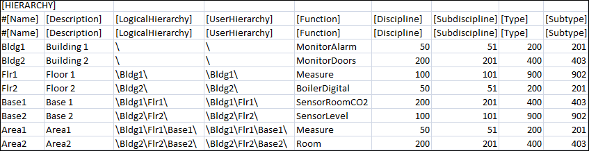 Replace the value under UnitTextGroup column with the text group name, that is TxG_S7_PRJ_Units. - The converter adds the delimiter '\' at the beginning of the existing logical and user hierarchy strings. For example, the string "Building1\Floor1\" will be changed to "\Building1\Floor1\".
