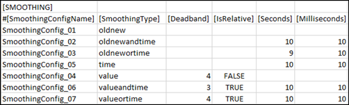 SmoothingConfigName | Name of a specific smoothing configuration |