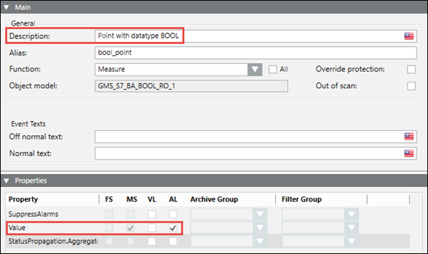 - Alarm types BET and NBET are not supported for items with state texts.