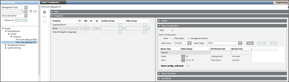 - AlarmValue: The value, or range of values, for which an alarm is to be issued.