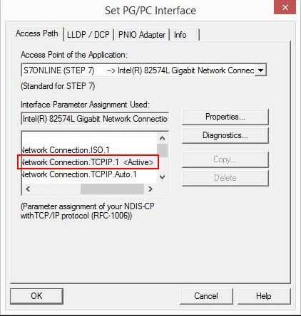 - Click OK, to apply the setting of the SIMATIC NET Diagnostics window.