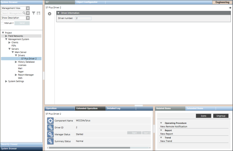 The S7 PLUS driver workspace allows you to configure using the Driver Number field in the Driver Information expander. It displays the ID of the selected S7 PLUS driver.