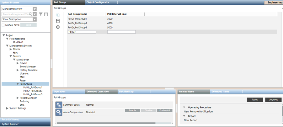 | Add New Poll Group | Adds an empty row to add a new entry for the poll group name and its poll interval. |