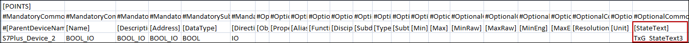 In such cases, a warning message is added to the Preimport log file. However, the parsing continues ignoring the StateText values of such a point.