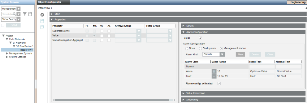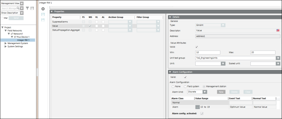 - AlarmValue: The value, or range of values, for which an alarm is to be issued.