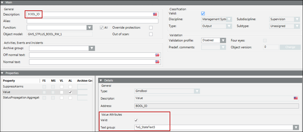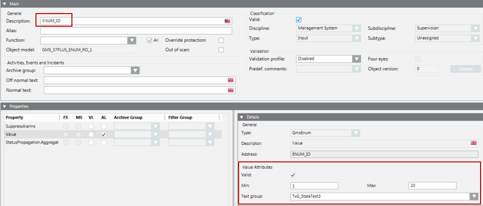UnitTextGroup | Name of the text group where unit text from the Unit field is defined. If the unit text group is blank, then by default TxG_EngineeringUnits is used. |